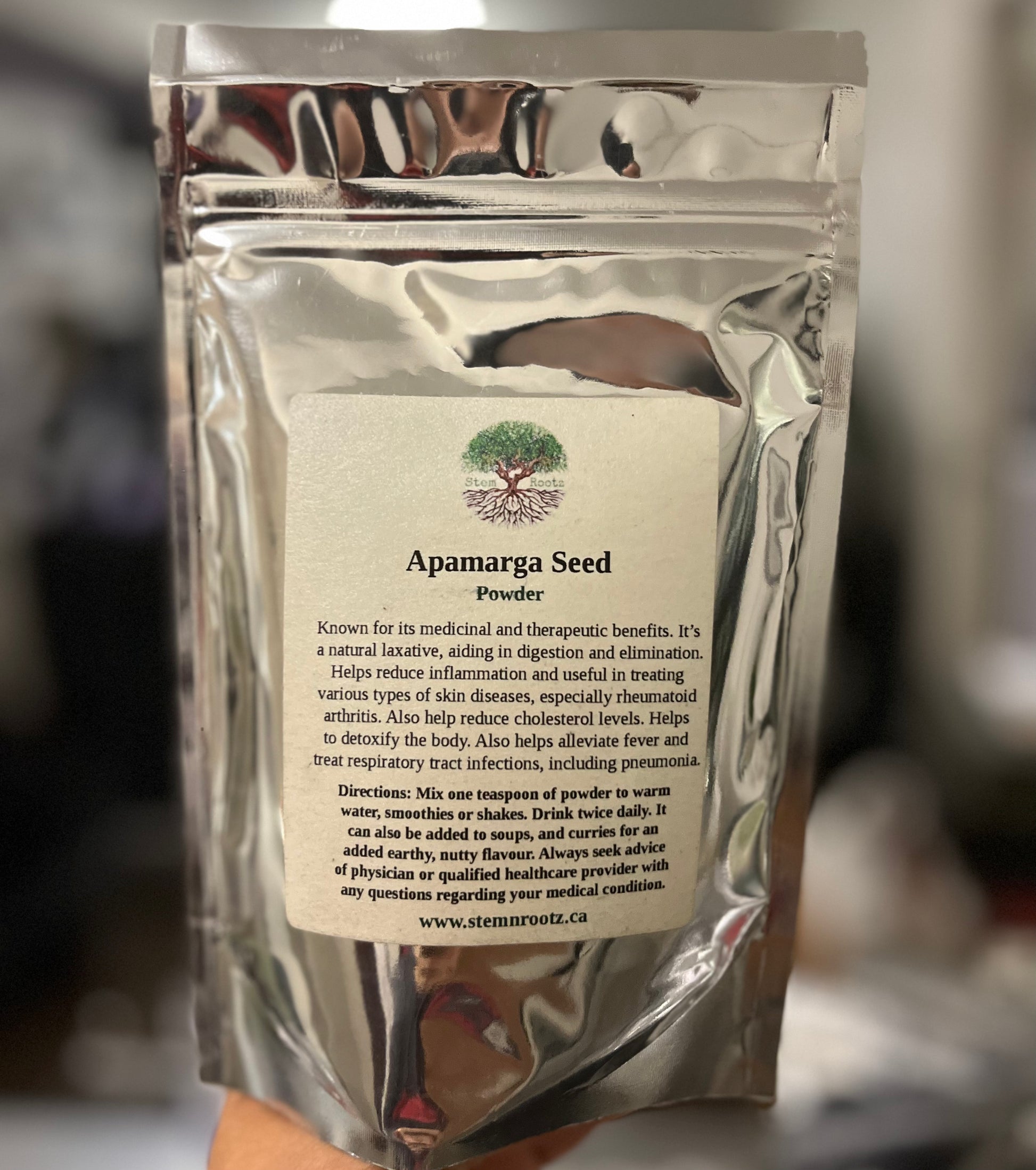 Mix 1–2 teaspoons into warm water, teas, or smoothies for optimal benefits. Naturally caffeine-free with a slightly bitter, earthy flavor.