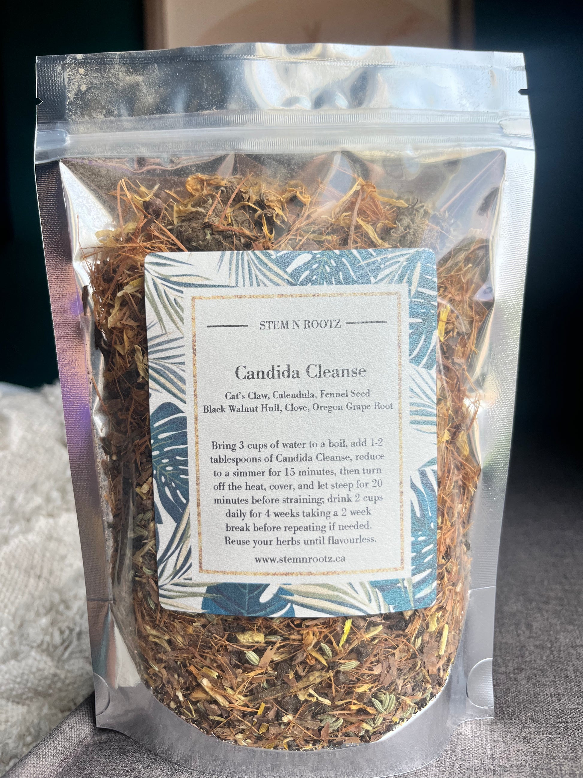 Bring 3 cups of water to a boil, add 1–2 tablespoons of Candida Cleanse Tea, reduce to a simmer for 10–15 minutes, then turn off the heat, cover, and let steep for 20 minutes before straining. Drink 2–3 cups daily for 4–6 weeks, then take a 2 week break before repeating if needed. You can reuse the same herbs 1–2 times until the flavor fades. Signs it’s working may include reduced sugar cravings, improved digestion, less bloating, and better energy.