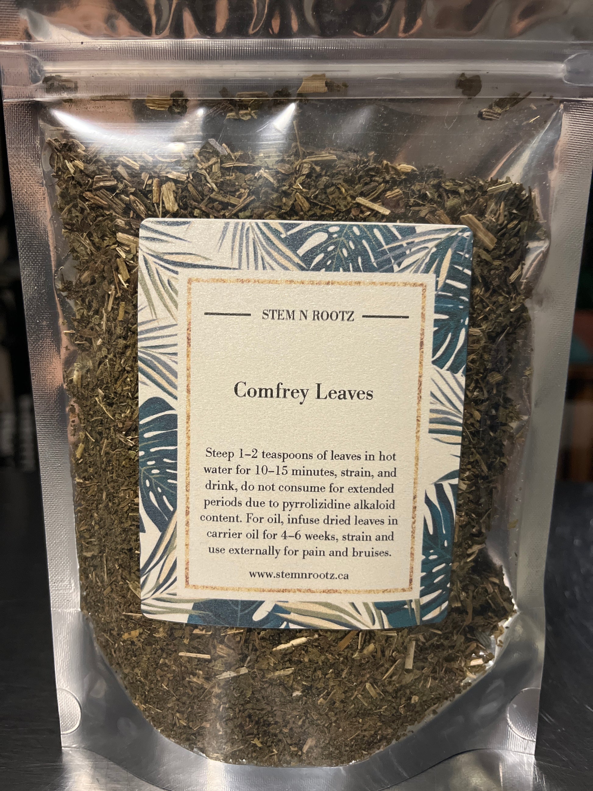 100% Pure Loose-Cut Comfrey Leaves.