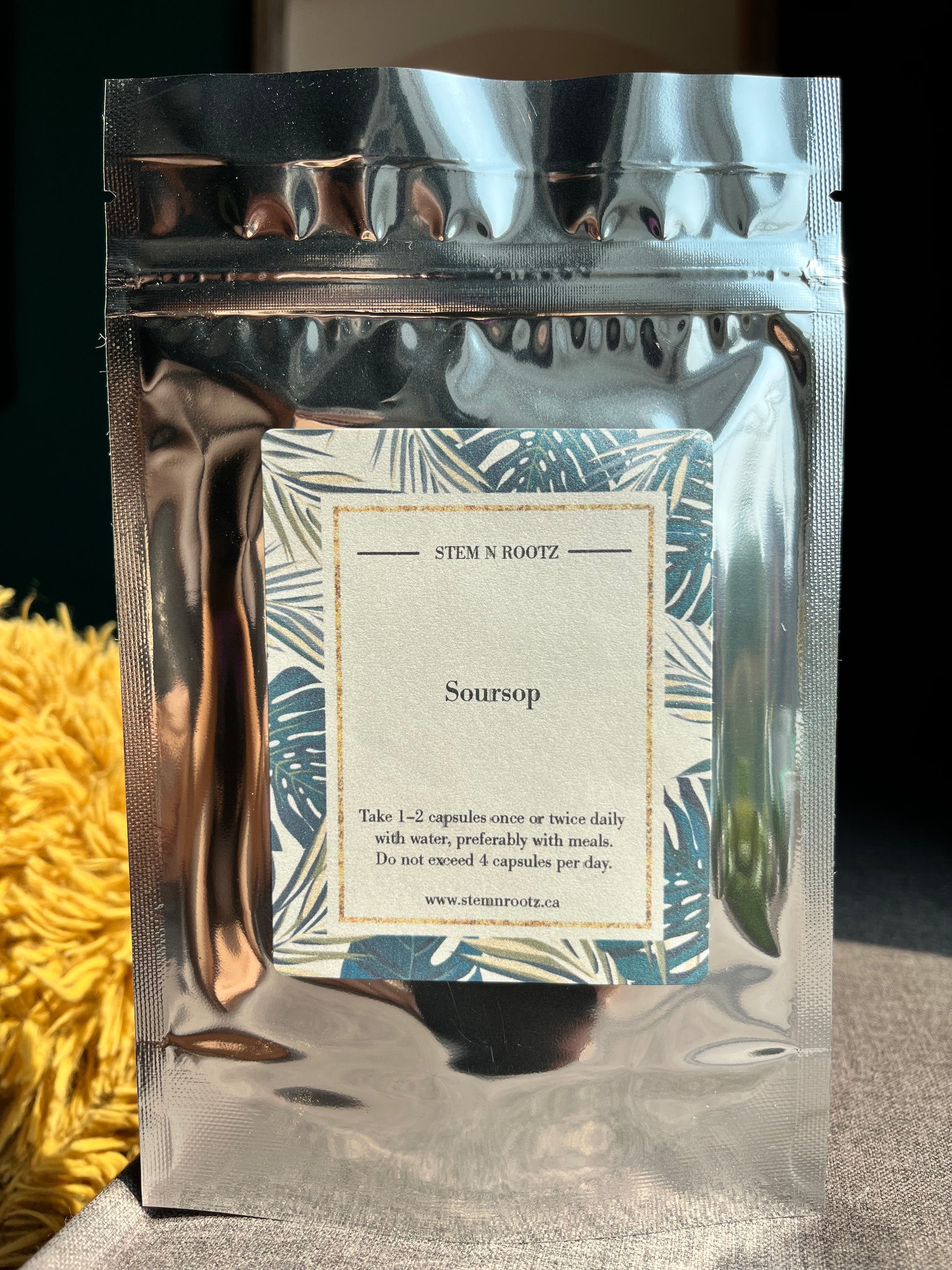 100% Pure Soursop Leaf Powder in a Vegan Capsule.