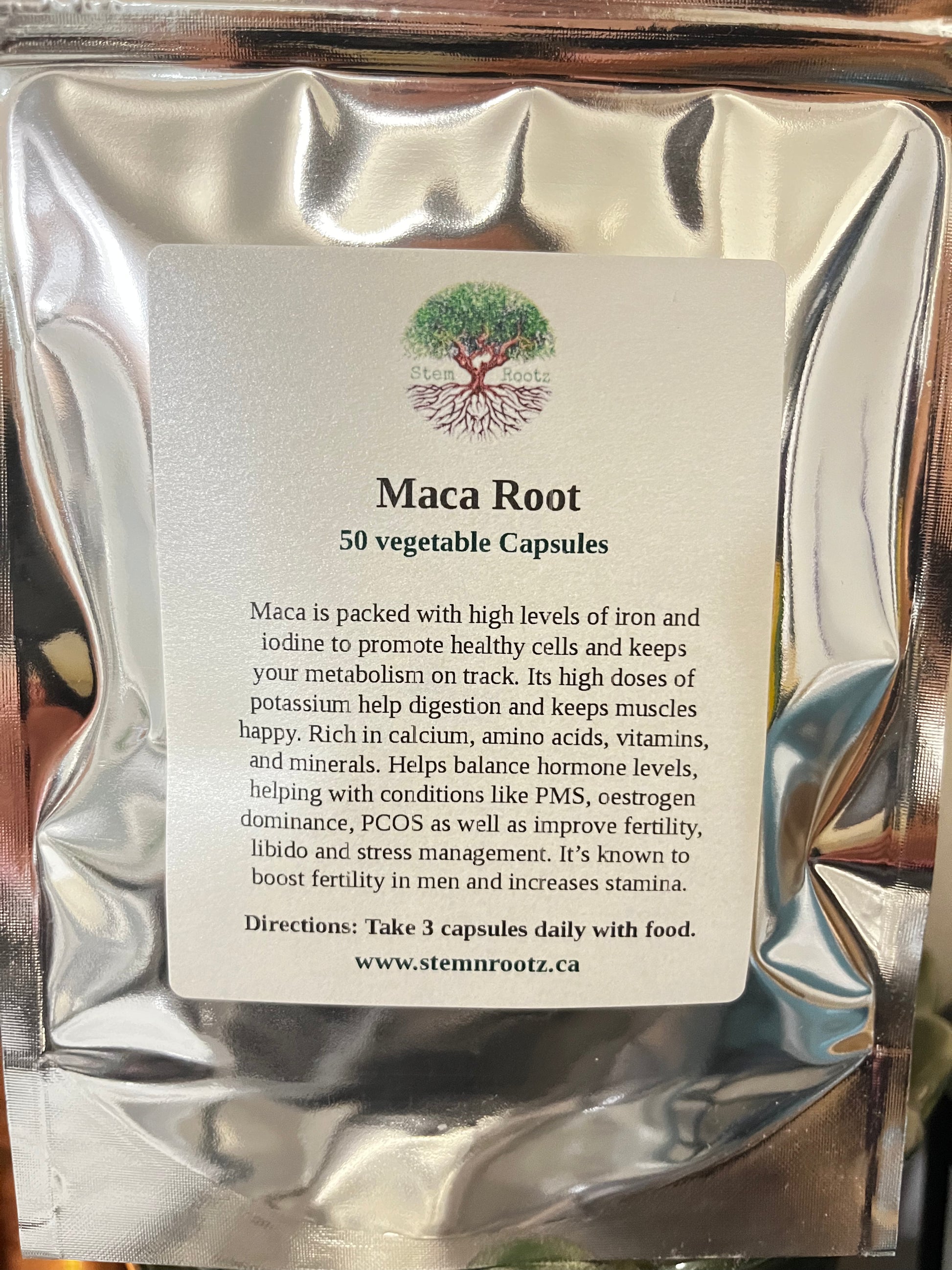 100% Pure Maca Root Powder (encapsulated in vegan capsules).