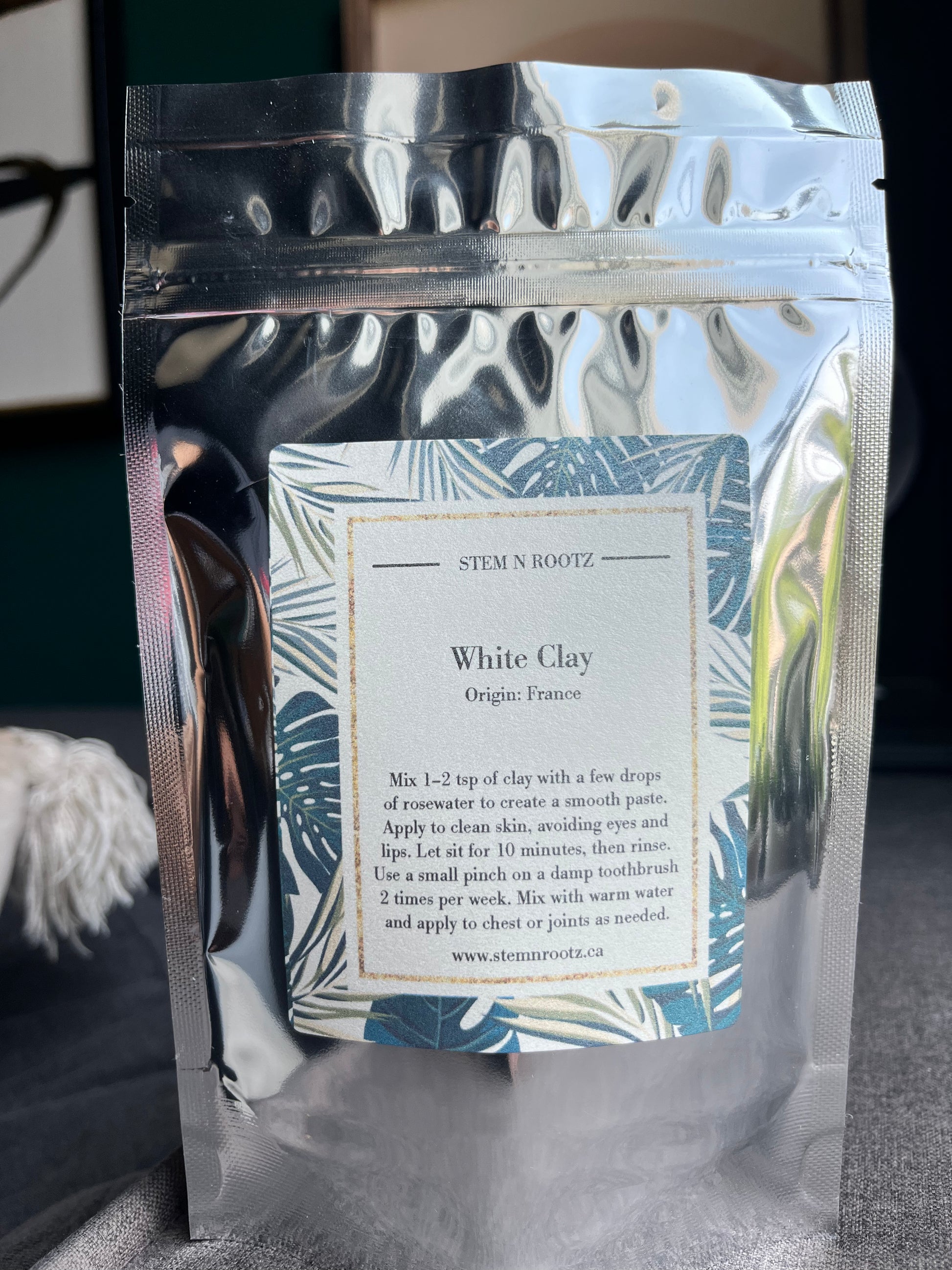 White Clay, also known as Kaolin, is a soft, mineral-rich clay sourced from France and prized for its gentle cleansing and detoxifying properties. Unlike harsher clays, Kaolin is ideal for sensitive skin and can be used in face masks, body treatments, tooth powders, and poultices. It works by absorbing impurities without stripping the skin or disrupting the body’s natural balance.